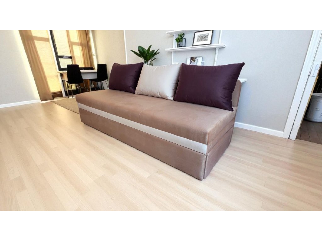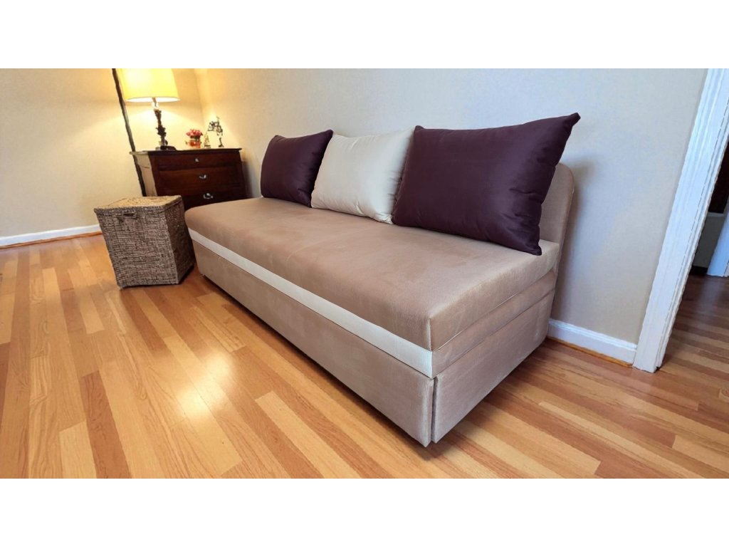 Vyrábíme pro Vás rozkládací pohovky na každodenní spaní. Zdravotní rozkládací pohovka s jednoduchým typem rozkladu a úložným prostorem. Je vhodná do dětských a návštěvních pokojů, určená pro každodenní spaní. Korpus pohovky je vyroben kvalitního lamina. Vnitřní výplň tvoří kvalitní vysokoelastická STUDENÁ PĚNA HR 50, polštáře o rozměru 70x45cm, jsou součástí pohovky. Praktický a snadno dostupný úložný prostor je ukryt ve výsuvném šuplíku.