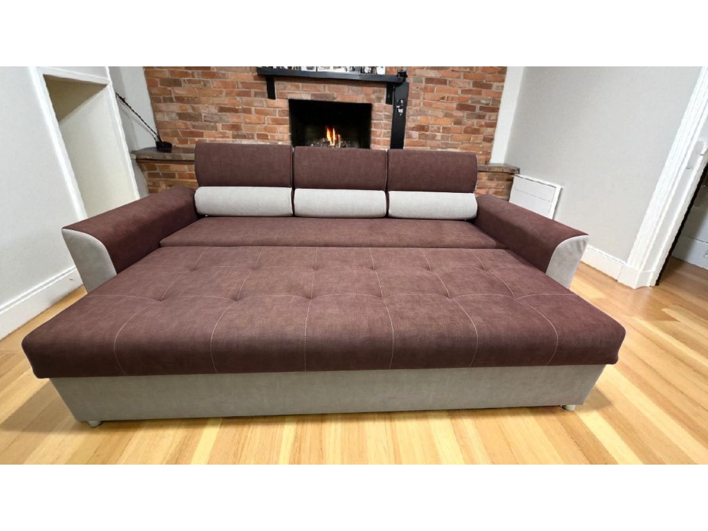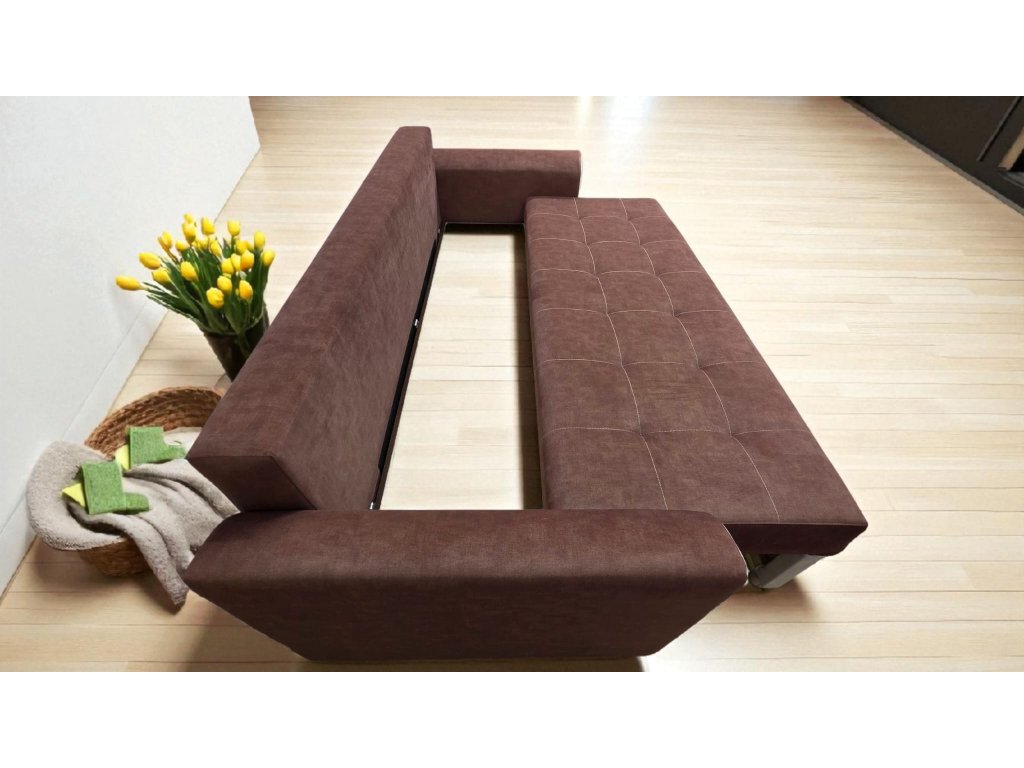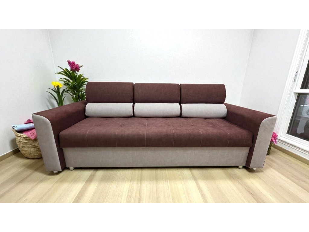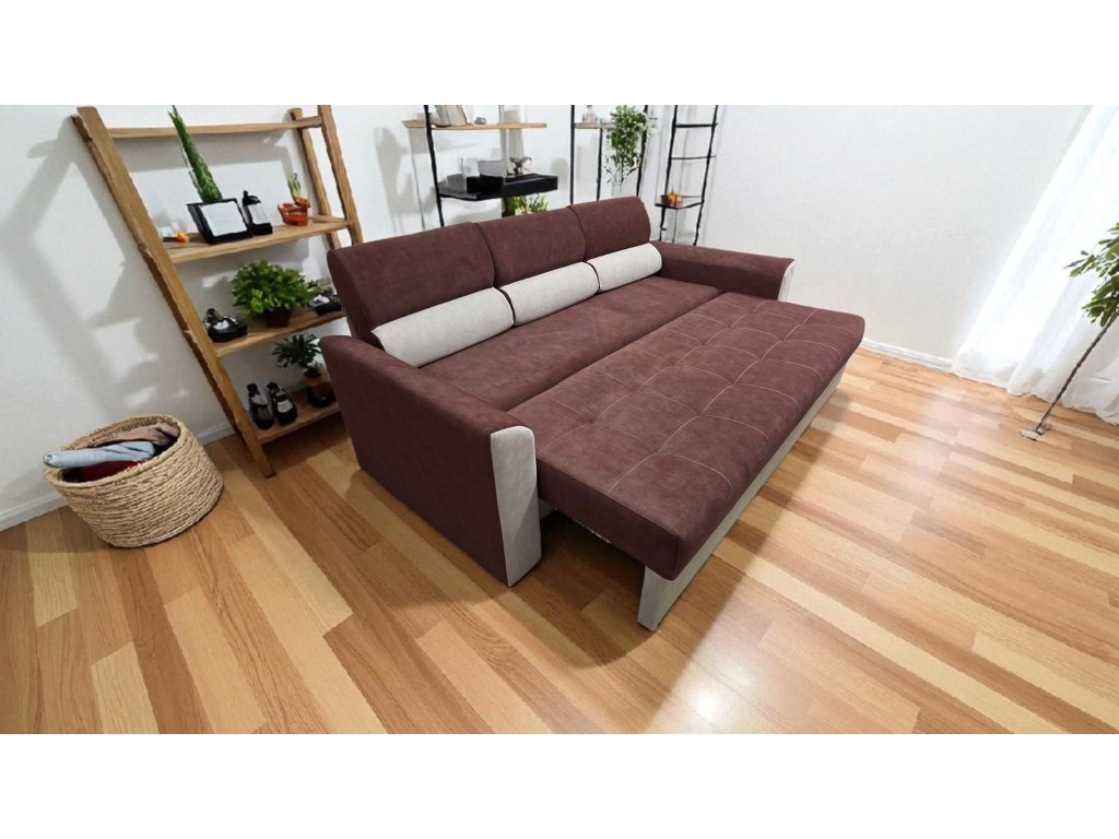 Zdravotní rozkládací pohovka určená k trvalému každodennímu spaní má na sedací části matraci ze kokosového vlákna s kombinací studené pěny, která je výjimečná svojí vysokou pružností, tvarovou stálostí a dlouhou životností. Tato pohovka se nemusí rozkládat a jeden člověk se vyspí na ploše 196x80cm. Je prodyšná, dobře odvádí tělesnou vlhkost, optimálně dýchá. Je určená na každodenní spaní. Netkaná textilie na sedácích zabraňuje UV záření a chrání vnitřní matraci. Pod sedákem je úložný prostor. Ložná plocha pro dva je 145 x 200cm. Velké a tvarované polštáře pod bedra, dokreslí design pohovky a zajistí maximální pohodlí.