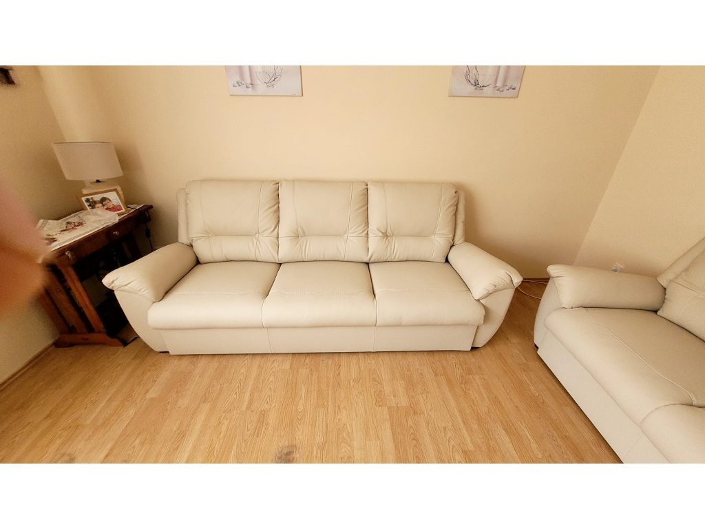 Pohodlná rozkládací pohovka s vysokou opěrou a ideální výškou sedu. Vnitřní výplní sedací soupravy je zdravotní pružinové jádro Bonell dle německé technologie v kombinaci s ortopedickou studenou pěnou HR 50. Výplní opěry je silikonizované vlákno, které zajistí luxusní měkké opření. Silikonizované vlákno je rovněž antialergický materiál, ve kterém se nezadržuje prach a roztoči. Tato sedací souprava je vhodná pro alergiky. Pohovka je rozkládací s možností volby 2 typů rozkladů, nebo šuplíkem.