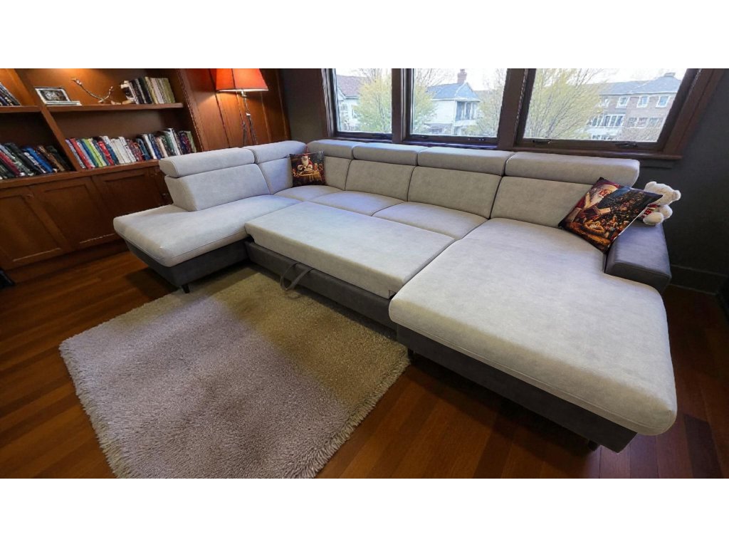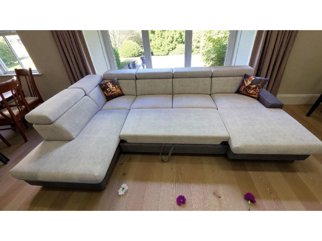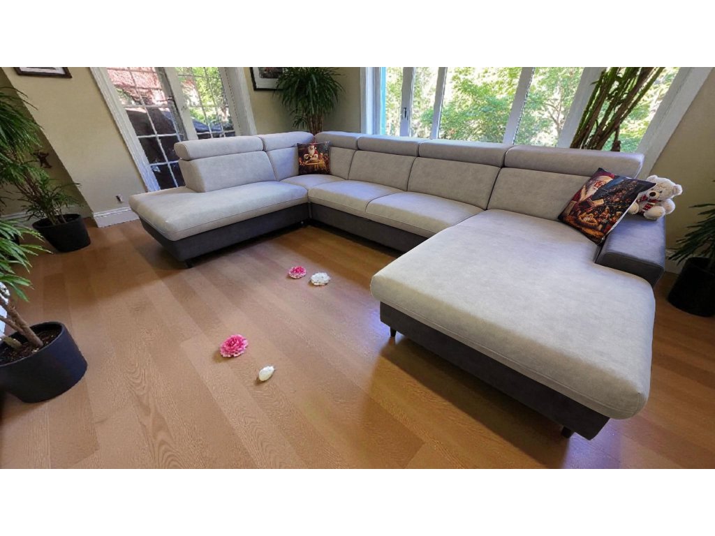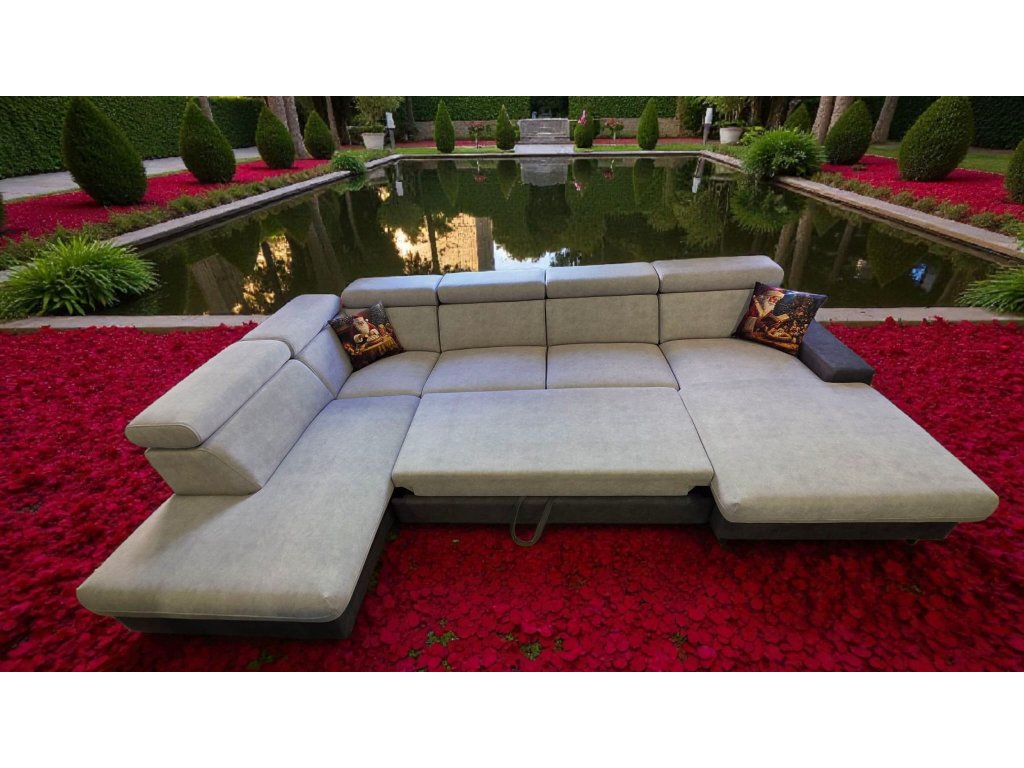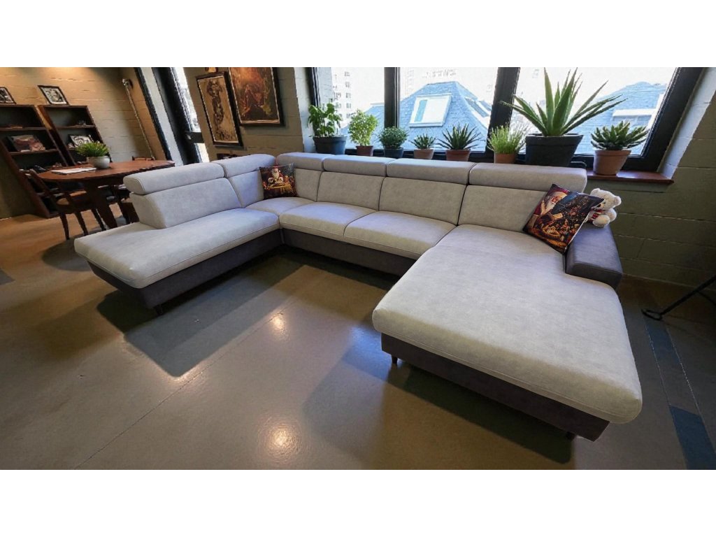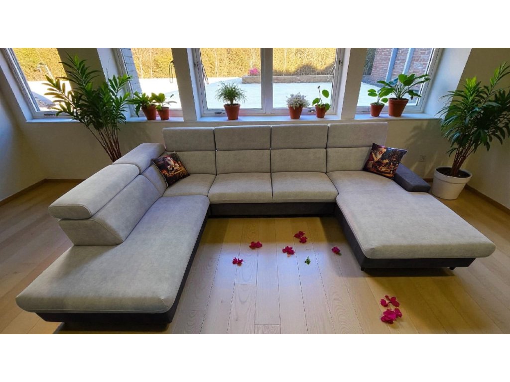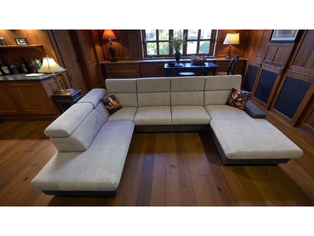 Sedací souprava do U s luxusní zdravotní matrací. Velmi prostorná v jedinečném designu uspokojí potřeby i toho nejnáročnějšího zákazníka. Praktické polohovací podhlavníky zajistí pohodlí při opření hlavy. Vnitřní výplň ze studené pěny v kombinaci s dvojím zdravotním pružením zajistí luxusní pohodlí, ortopedické vlastnosti a dlouhodobou životnost sedací soupravy. Sedací souprava je rozkládací, se dvěma úložnými prostory. Možno zvolit potahovou látku, typ područky, otočení rohu, popř. úpravu rozměru. Dále pak je možnost výběru rohu kulatého nebo pravý úhel. Zákazník má dále možnost výběru nožek. Zadejte si své rozměry a my vyrobíme sedačku podle Vaších představ.