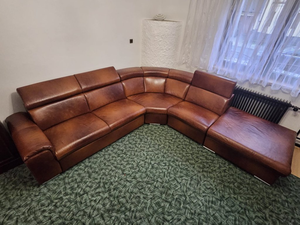 Rohová sedací souprava s provedení kulatého rohu. Velmi prostorná v jedinečném designu uspokojí potřeby i toho nejnáročnějšího zákazníka. Zdravotní dvojí pružení dle německé technologie v kombinaci se studenou pěnou HR50 zajistí luxusní pohodlí a odpočinek. Praktické polohovací podhlavníky zajistí pohodlí při opření hlavy. Sedací souprava je rozkládací, s úložným prostorem. Možno zvolit jiný typ potahové látky, typ područky, otočení rohu, popř. úpravu rozměru. Zákazník má rovněž možnost výběru nožek viz. obrázek níže/.