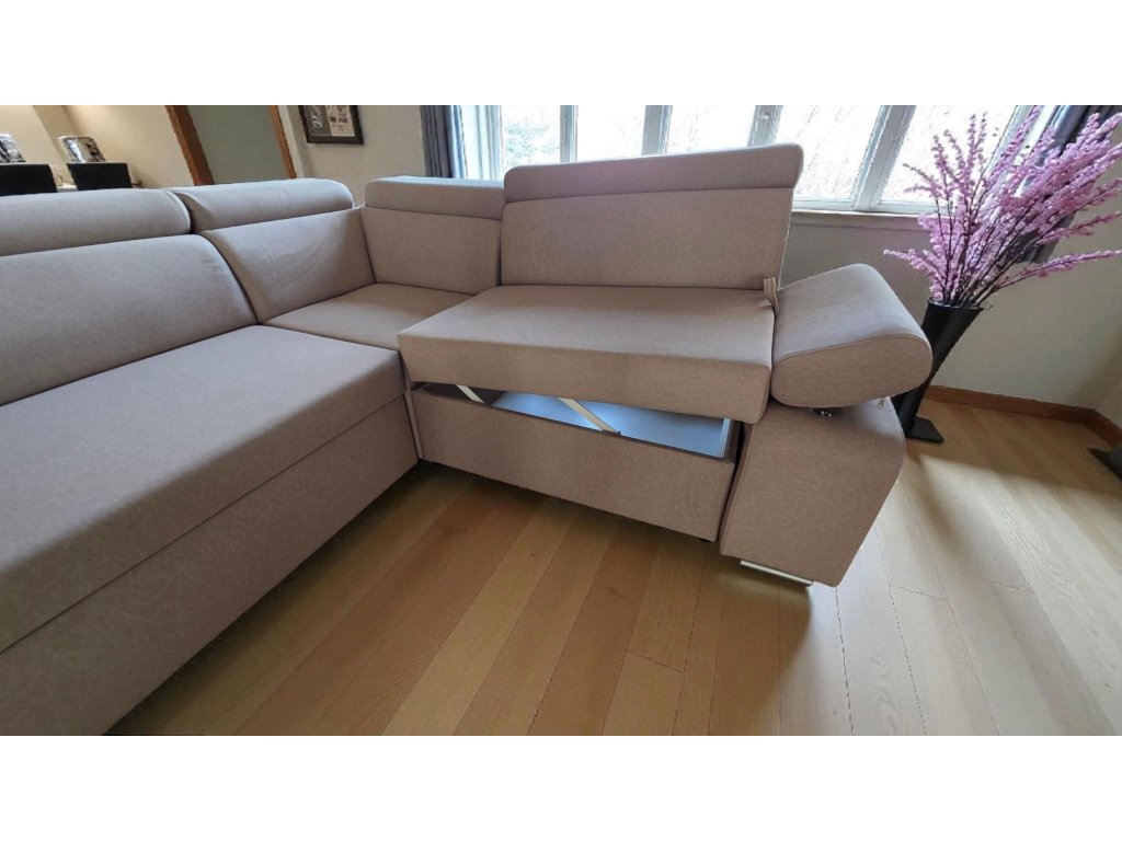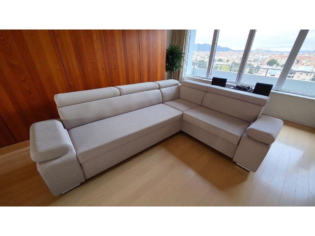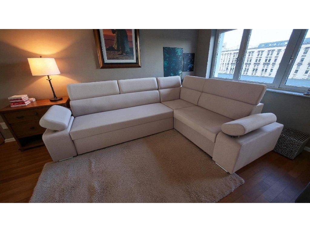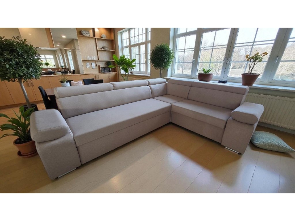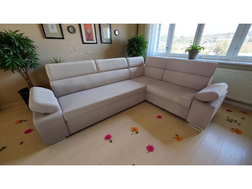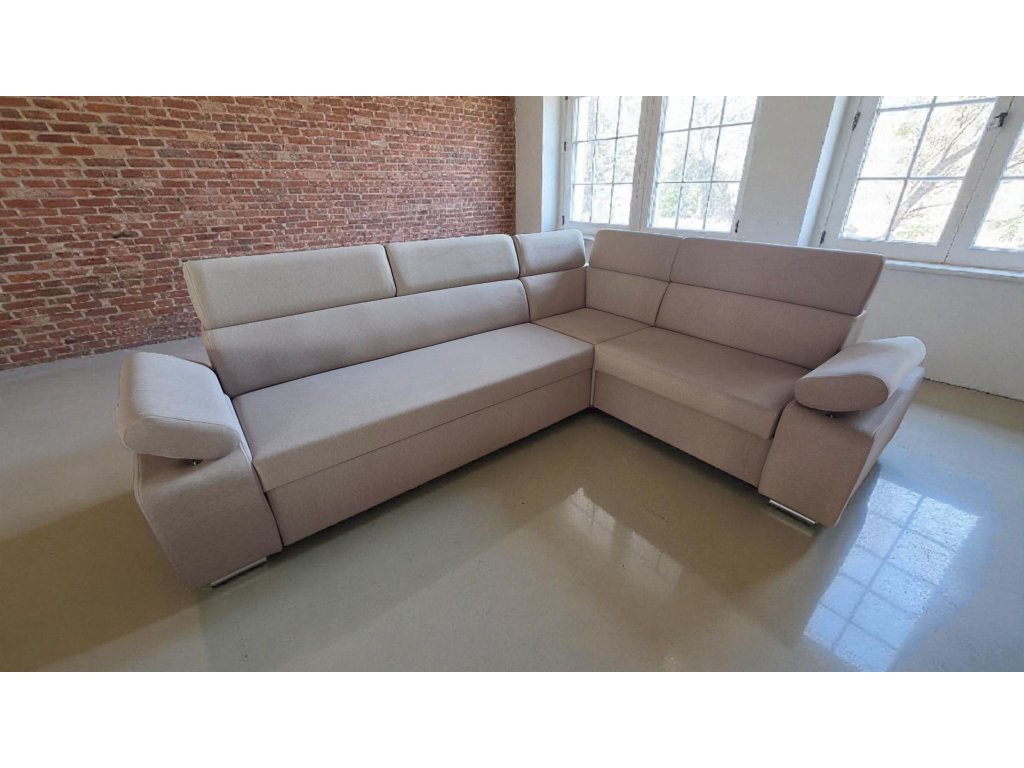 Rohová sedací souprava s polohovacími podhlavníky. Specifická sedací souprava tužšího posedu, pro zákazníky trpícími bolestí kloubů, kyčlí a zad. Tužší sezení rovněž zajistí pohodlné vstávání ze sedací soupravy a také dlouhodobou životnost bez nežádoucího efektu prosezení. Velmi prostorná, v jedinečném designu uspokojí potřeby i toho nejnáročnějšího zákazníka. Praktické polohovací podhlavníky zajistí pohodlí při opření hlavy. Vnitřní výplní je zdravotní jádro tvořeno dvojitým zdravotním pružením dle německé technologie, v kombinaci s paměťovou studnou pěnou HR50, která zajistí luxusní odpočinek a v neposlední řadě také dlouhodobou životnost bez nežádoucího efektu prosezení. Sedací souprava je rozkládací, s úložným prostorem. Varianta se dvěma područkami.
