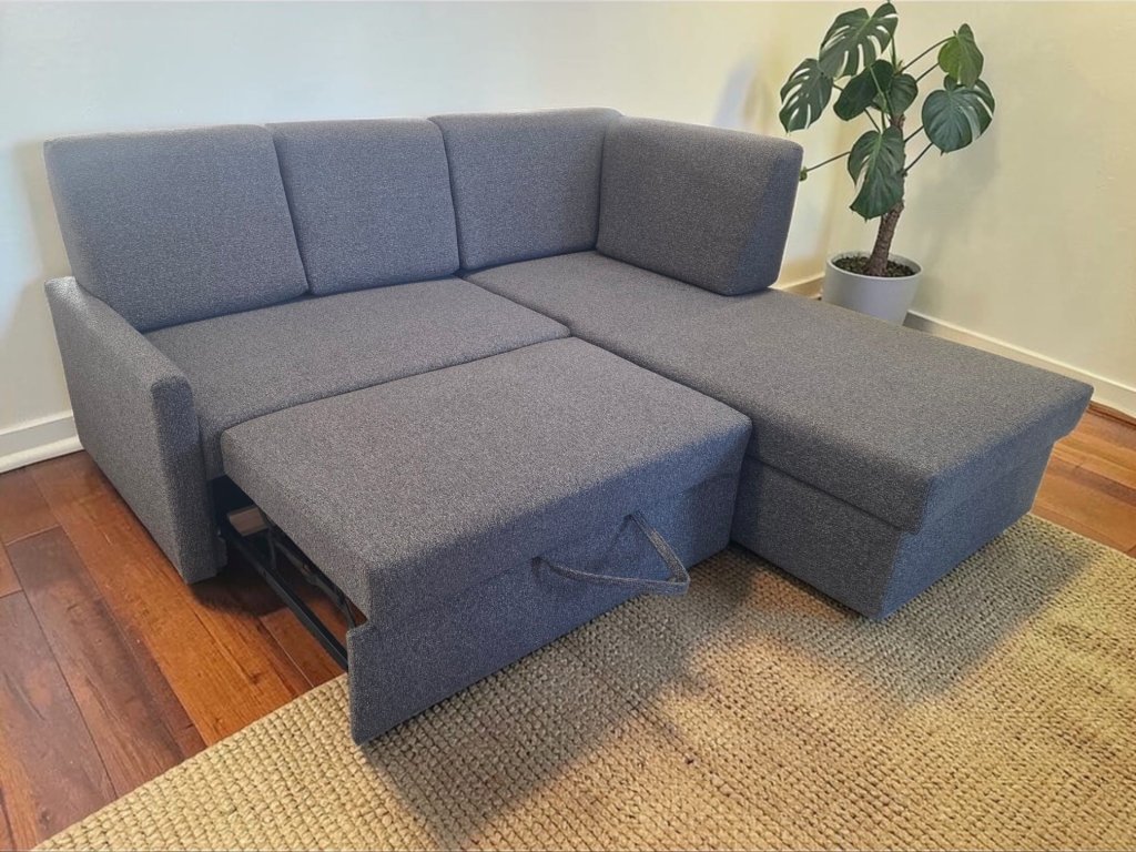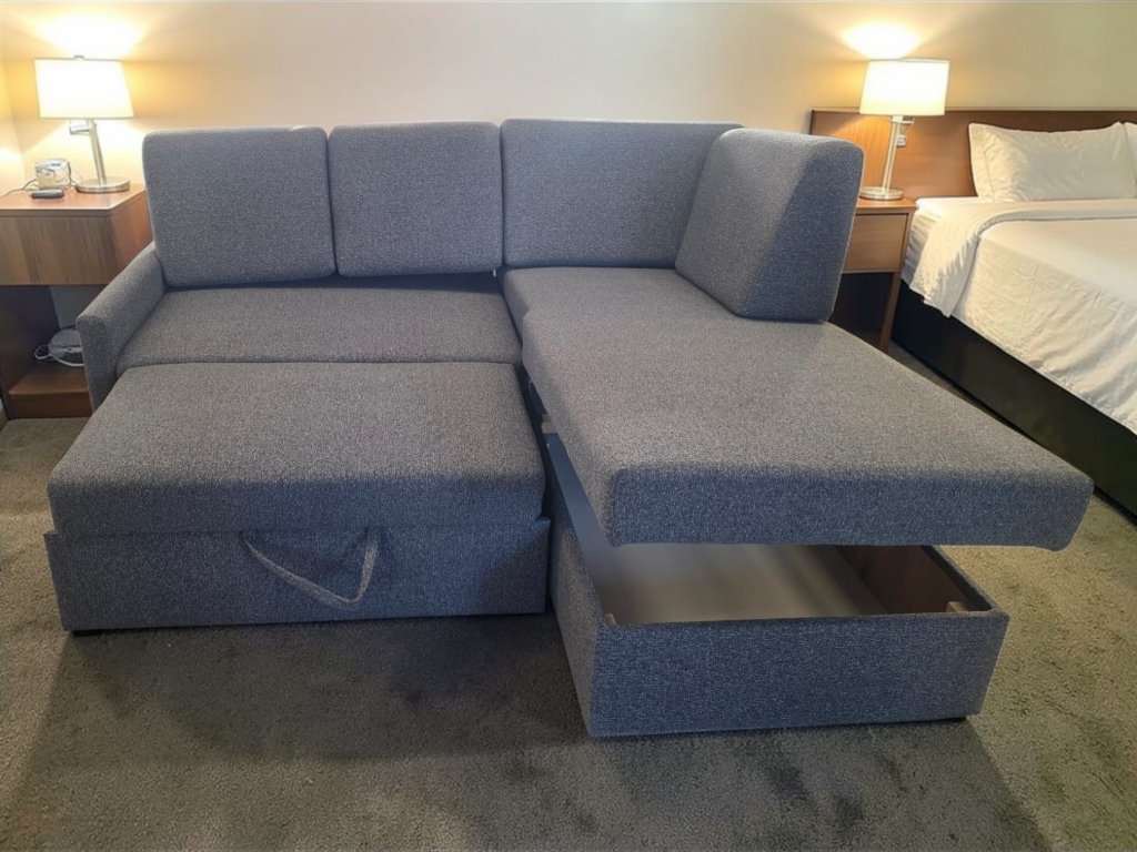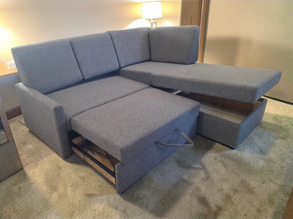 Snímatelné polštáře vytvoří velkou plochu na spaní a zajistí pohodlí sedací soupravy. Područka má polohovací polštářek + šuplík.