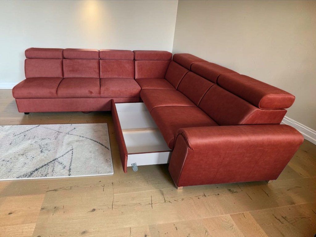 Vyrábíme pro Vás sedací soupravy na míru. Rohová sedací souprava s polohovacími podhlavníky. Velmi prostorná v jedinečném designu uspokojí potřeby i toho nejnáročnějšího zákazníka. Praktické polohovací podhlavníky zajistí pohodlí při opření hlavy. Vnitřní výplní je zdravotní jádro tvořeno dvojitým zdravotním pružením dle německé technologie + studená pěna HR 50, která zajistí luxusní pohodlí a v neposlední řadě také dlouhodobou životnost bez nežádoucího efektu prosezení. Sedací souprava je rozkládací, s úložným prostorem. Možno zvolit typ potahu, typ područky, otočení rohu a zhotovení rozměrů, dle Vaších požadavků. Dále pak je možnost výběru rohu kulatého nebo pravý úhel. Zákazník má možnost výběru nožek. .