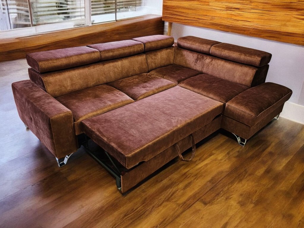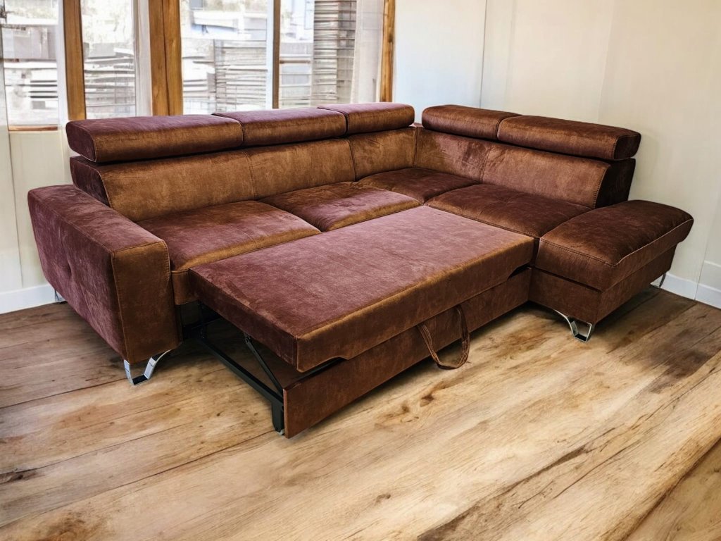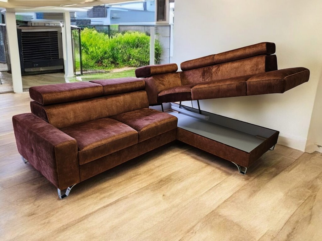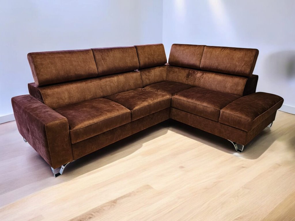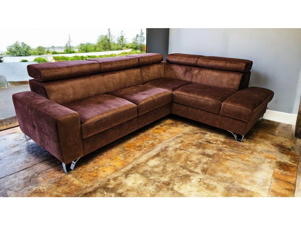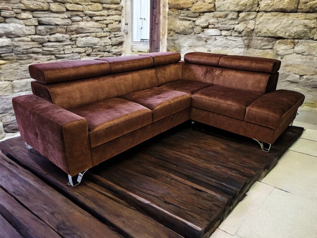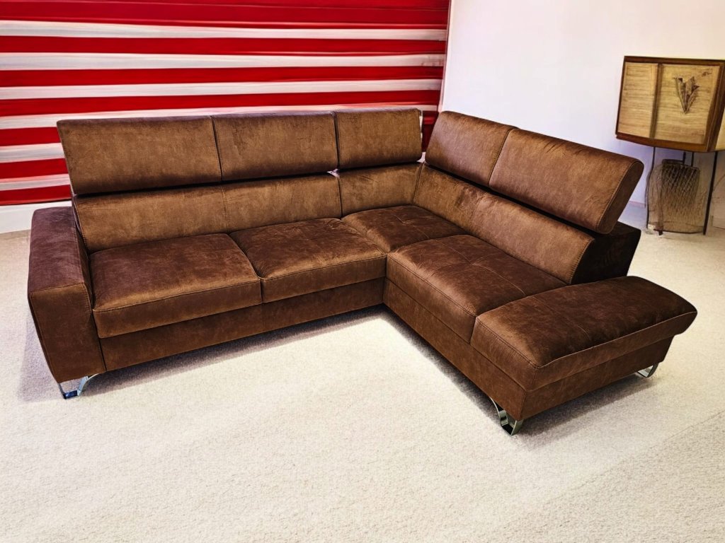 Luxusní, pohodlná sedací souprava Italského stylu, rozkládací s úložných prostorem. Zákazník si může rovněž zvolit typ potahové látky, popř. je možno dodat v v pravé kůži dle výběru zákazníka. Vnitřní výplní sedací soupravy je zdravotní jádro Bonell s dvojím pružením dle německé technologie + s viscoelastickou studenou pěnou HR 50. Polohovací podhlavníky dotvoří pohodlí sedací soupravy. Možno prošít kontrastní nití pro dotvoření designu. Možno doplnit křeslem ve shodném designu.