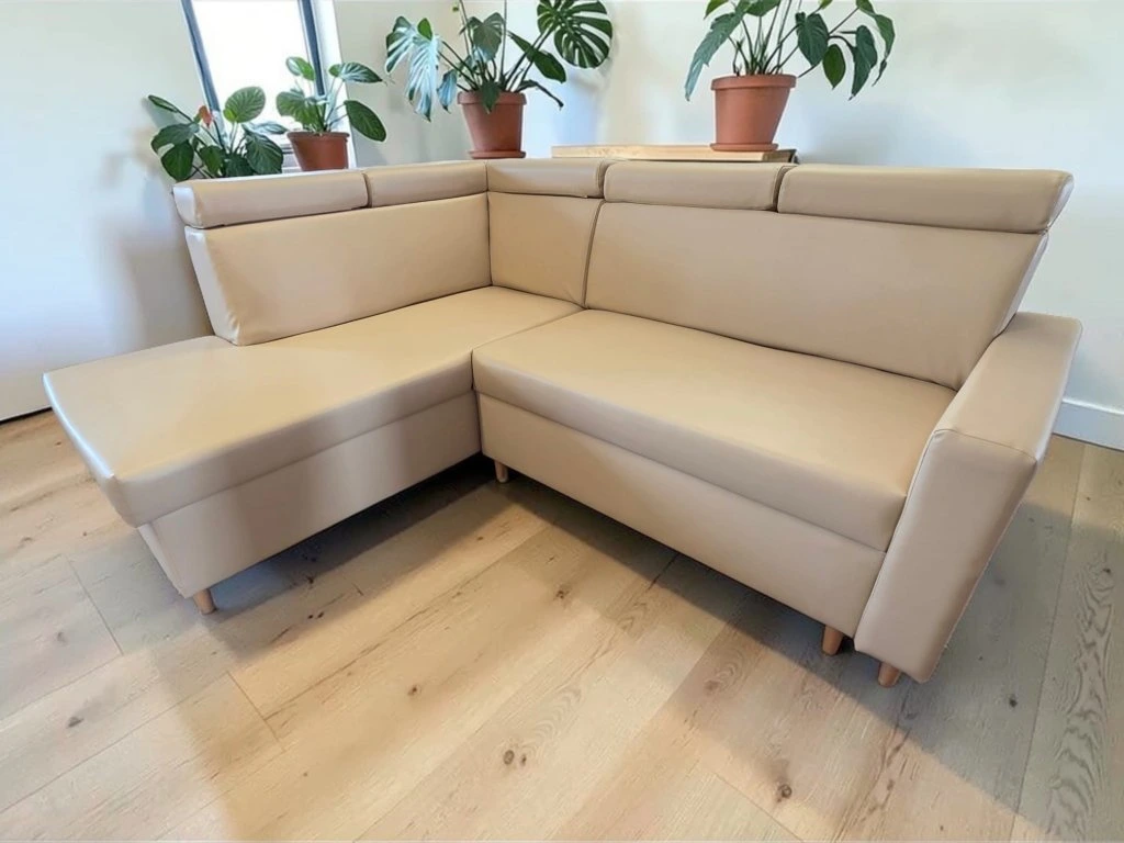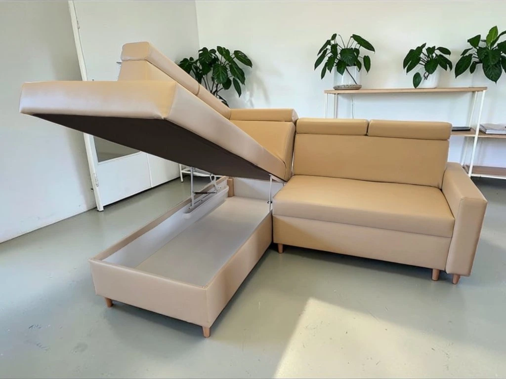 Rohová sedací souprava s polohovacími podhlavníky. Specifická sedací souprava tužšího posedu pro zákazníky trpícími bolestí kloubů, kyčlí a zad. Tuhý posed rovněž zajistí pohodlné vstávání ze sedací soupravy a také dlouhodobou životnost bez nežádoucího efektu prosezení. Velmi prostorná v jedinečném designu uspokojí potřeby i toho nejnáročnějšího zákazníka. Praktické polohovací podhlavníky zajistí pohodlí při opření hlavy. Vnitřní výplní je zdravotní jádro tvořeno dvojitým zdravotním pružením dle německé technologie v kombinaci s studnou pěnou HR50, která zajistí luxusní odpočinek a v neposlední řadě také dlouhodobou životnost bez nežádoucího efektu prosezení. Sedací souprava je rozkládací, s úložným prostorem. Možno zvolit typ potahu, typ područky, otočení rohu, popř. úpravu rozměru. Sedací souprava je doplněna výsuvným odkládacím šuplíkem a zabudovanou zásuvkou s USB v opěrné části.