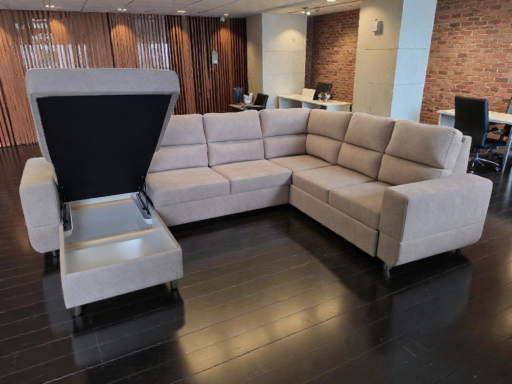 Součástí sedací soupravy je rovněž rozklad+ úložný prostor.
