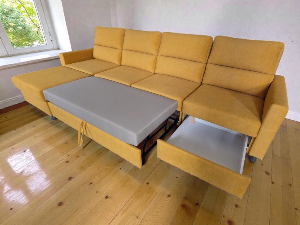 Součástí sedací soupravy je rovněž rozklad+ úložný prostor.